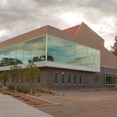This project, located on the Northern New Mexico College campus, consists of a major two-story addition to the existing library (Ben Lujan Learning Resource Center, 1980). The library is envisioned to be the centerpiece of activity for the college. An open-plan interior layout provides a variety of individual and group study experiences, with noisy to quiet environments. The layout offers small rooms for group study, private study pods, study carrels, lounge chair groupings, six-station computer tables, and linear counter stool-height study bars. Open plan provides future space-planning flexibility, book stacks and library furniture can be rearranged, reduced or expanded to suit evolving functional trends.